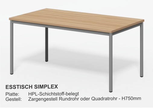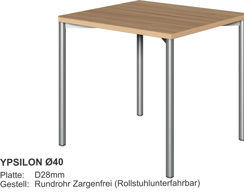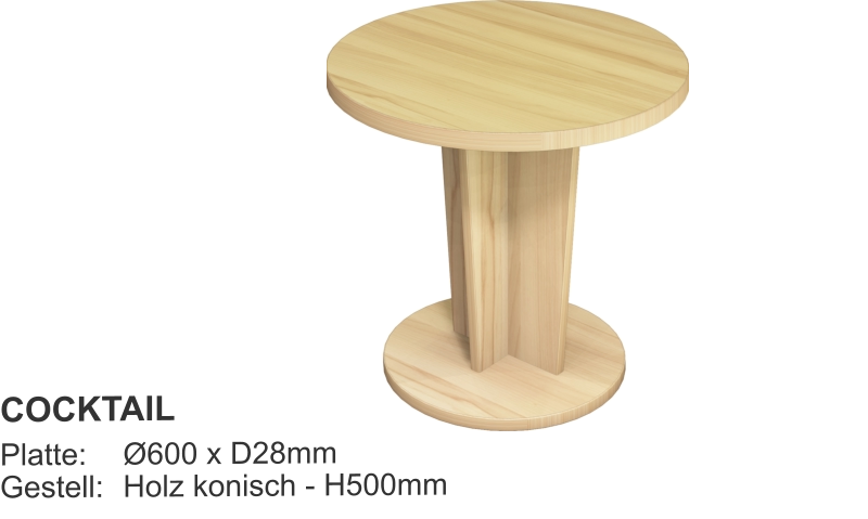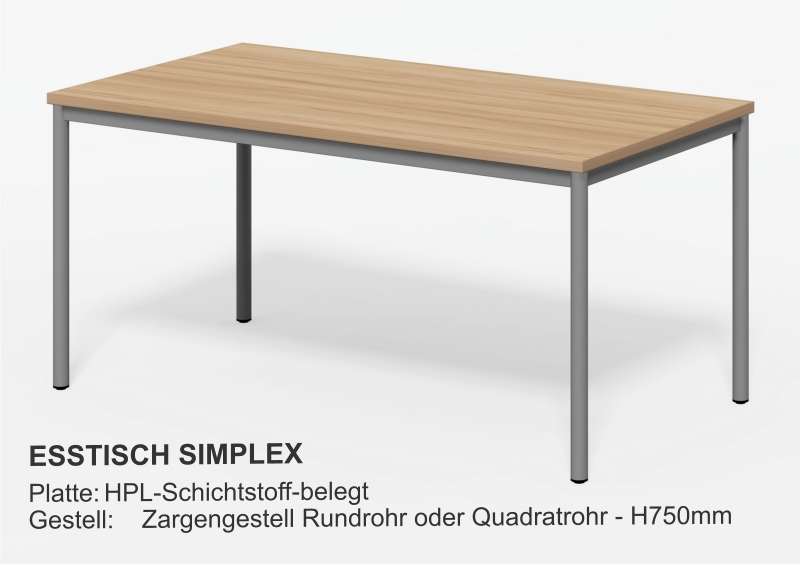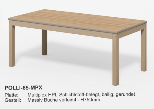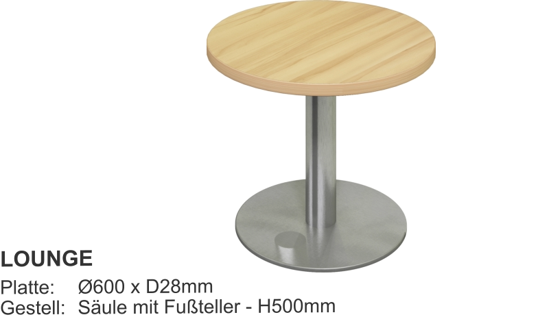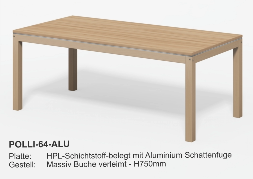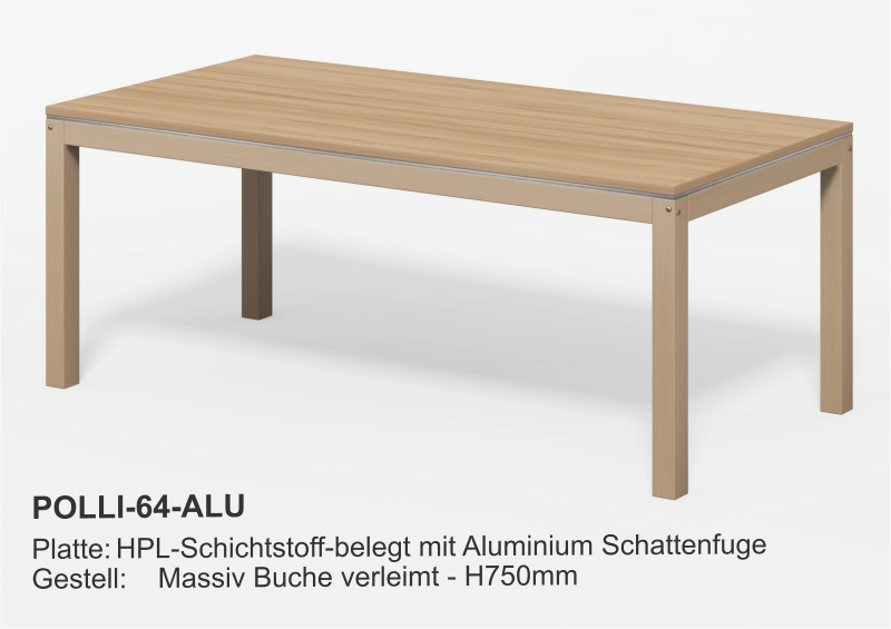 Esstische Platte 28mm mit HPL-Beschichtung- Optional Multiplex + HPL- Optional Kanten ballig gerundet Größen:- Fast jedes Mass lieferbar Gestell Holz:- XL-Querschnitt- Zargen, fest verleimt- Zusätzlich M6-verschraubt- Vollflächiger Filzschutz unten- Extrem stabilGestell Metall::- Rundrohr Ø40 - Ø50 - Ø60mm- Quadratrohr 40/40 - 50/50mmGestellfarbe:- Standard RAL9006 Aluminium- Fast jede RAL-Farbe lieferbar Couchtische Tischplatte D28mm- Optional + HPL-Beschichtung Größen:- Fast jedes Mass lieferbar Gestell:- HolzGestellfarbe:- Holz Beistelltische Tischplatte D28mm- Optional + HPL-Beschichtung Größen:- Standard Ø800 x H750mm- Fast jedes Mass lieferbar Gestell:- Säule und Fußteller- Andere Säulenformen lieferbar- HolzGestellfarbe:- Edelstahl- Holz Säulentische Tischplatte D28mm- Optional + HPL-Beschichtung Größen:- Standard Ø800 x H750mm- Fast jedes Mass lieferbar Gestell:- Säule und Fußteller- Andere Säulenformen lieferbarGestellfarbe:- Edelstahl Bewohnertische Tischplatte D28mm- Optional + HPL-Beschichtung Größen:- Standard L800 x B800 x H750mm- Fast jedes Mass lieferbar Gestell fest verschweist:- Rundrohr Ø40 - Ø50 - Ø60mm- Quadratrohr 40/40 - 50/50mmGestellfarbe:- Standard RAL9006 Aluminium- Fast jede RAL-Farbe lieferbar