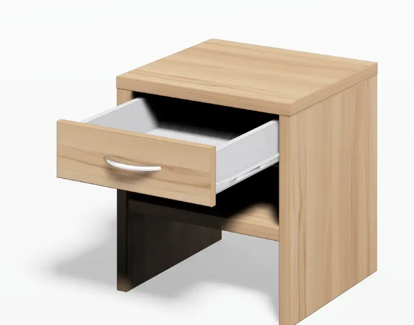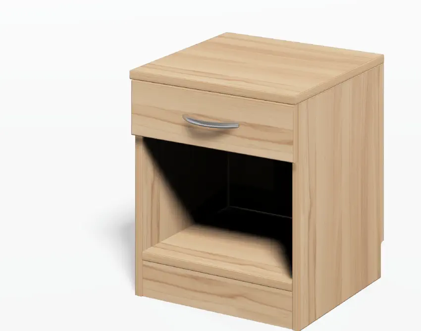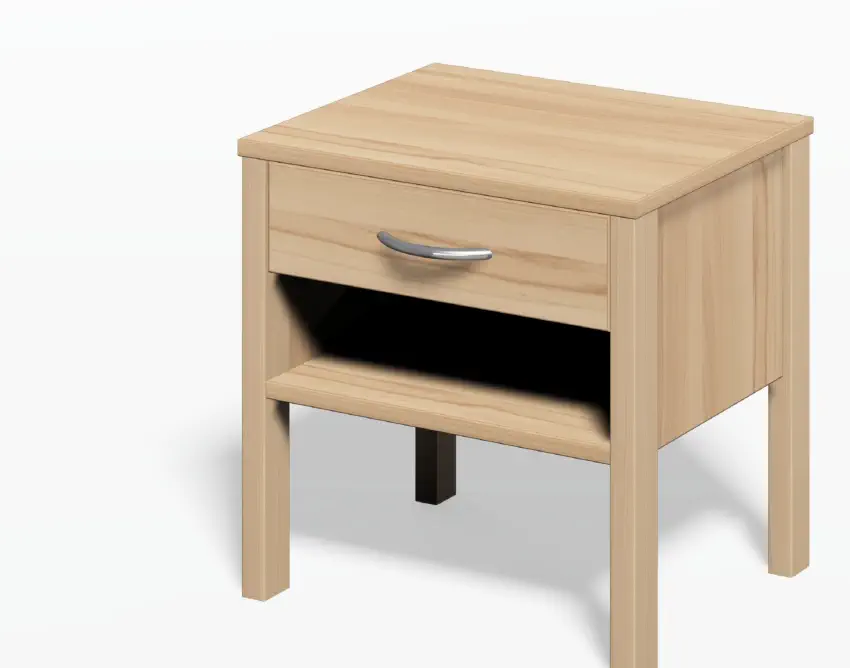 Die Konstruktion unserer Korpusmöbel hebt sich auch bei unseren Nachttischen ganz klar vom Markt ab.Die Größenverhältnise werden in der Grafik rechts farbig dargestellt. Matratzenbündig oder lieber etwas höher, ist Geschmackssache.Die praktische Ablage in dunklen Stunden.