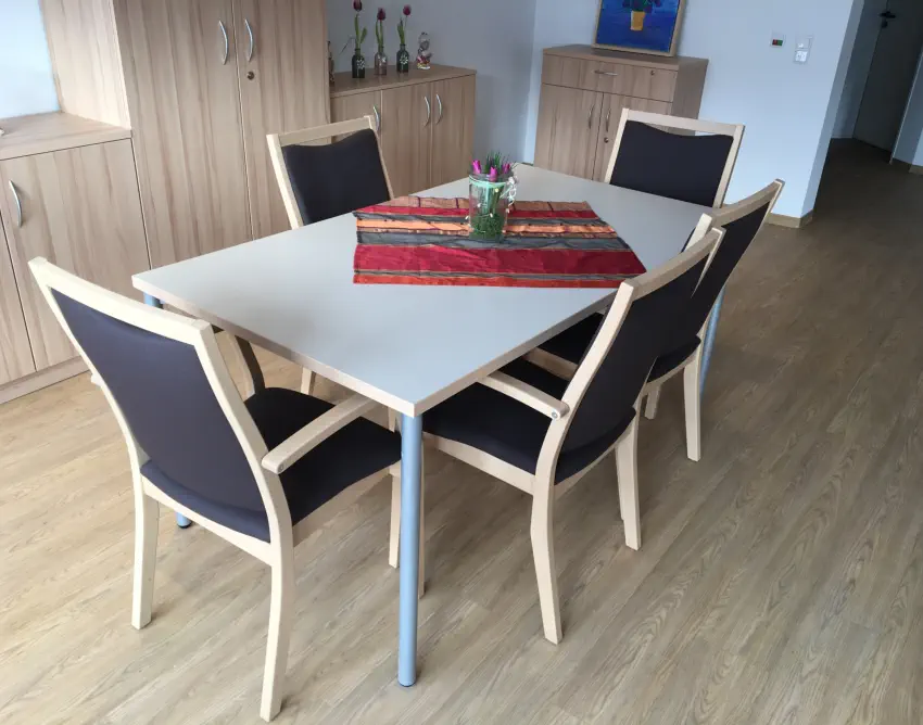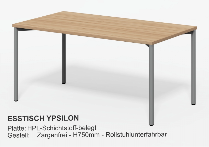 Esstische Platte 28mm mit HPL-Beschichtung- Optional Multiplex + HPL- Optional Kanten ballig gerundet Größen:- Fast jedes Mass lieferbar Gestell Holz:- XL-Querschnitt- Zargen, fest verleimt- Zusätzlich M6-verschraubt- Vollflächiger Filzschutz unten- Extrem stabilGestell Metall::- Rundrohr Ø40 - Ø50 - Ø60mm- Quadratrohr 40/40 - 50/50mmGestellfarbe:- Standard RAL9006 Aluminium- Fast jede RAL-Farbe lieferbar Couchtische Tischplatte D28mm- Optional + HPL-Beschichtung Größen:- Fast jedes Mass lieferbar Gestell:- HolzGestellfarbe:- Holz Beistelltische Tischplatte D28mm- Optional + HPL-Beschichtung Größen:- Standard Ø800 x H750mm- Fast jedes Mass lieferbar Gestell:- Säule und Fußteller- Andere Säulenformen lieferbar- HolzGestellfarbe:- Edelstahl- Holz Säulentische Tischplatte D28mm- Optional + HPL-Beschichtung Größen:- Standard Ø800 x H750mm- Fast jedes Mass lieferbar Gestell:- Säule und Fußteller- Andere Säulenformen lieferbarGestellfarbe:- Edelstahl Bewohnertische Tischplatte D28mm- Optional + HPL-Beschichtung Größen:- Standard L800 x B800 x H750mm- Fast jedes Mass lieferbar Gestell fest verschweist:- Rundrohr Ø40 - Ø50 - Ø60mm- Quadratrohr 40/40 - 50/50mmGestellfarbe:- Standard RAL9006 Aluminium- Fast jede RAL-Farbe lieferbar